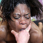 Nia is a ghetto hood booger who looks like mix between Michael Strahan from the New York Giants and a burnt Howard the Duck. I'm sure it's not the type of girl Rock wanted to do his first real scene with... but this dude is destined to go far and he's ready to put in the work. First off, Nia literally puked more than I've ever seen a girl do before. It seems like with every pump of the white cock down her throat, barf came spewing out of her mouth. The studio stank like regurgitated fast food and cunt. Rock slapped the shit out of this bitch. I think he enjoyed being able to let loose his pent up agression on some random dumb whore. After he fucked her face, he banged her stink hole. Truth be told, she did have a nice body. She's ugly as fuck... but has a killer body. When he was done with that chore, he blew his nut on her face and then rinsed her off with her own puke. It was both absolutely gross and amazing at the same time.